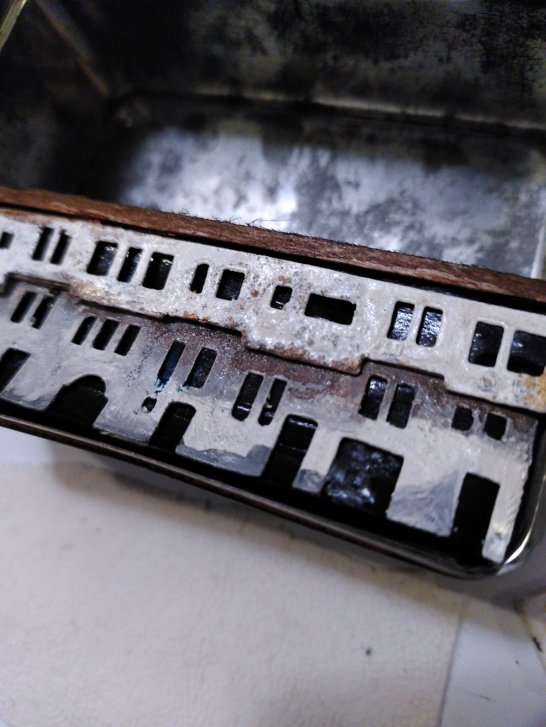 Mini-Diorama Schmale Häuser, enge Straße in Blechdose, Detail