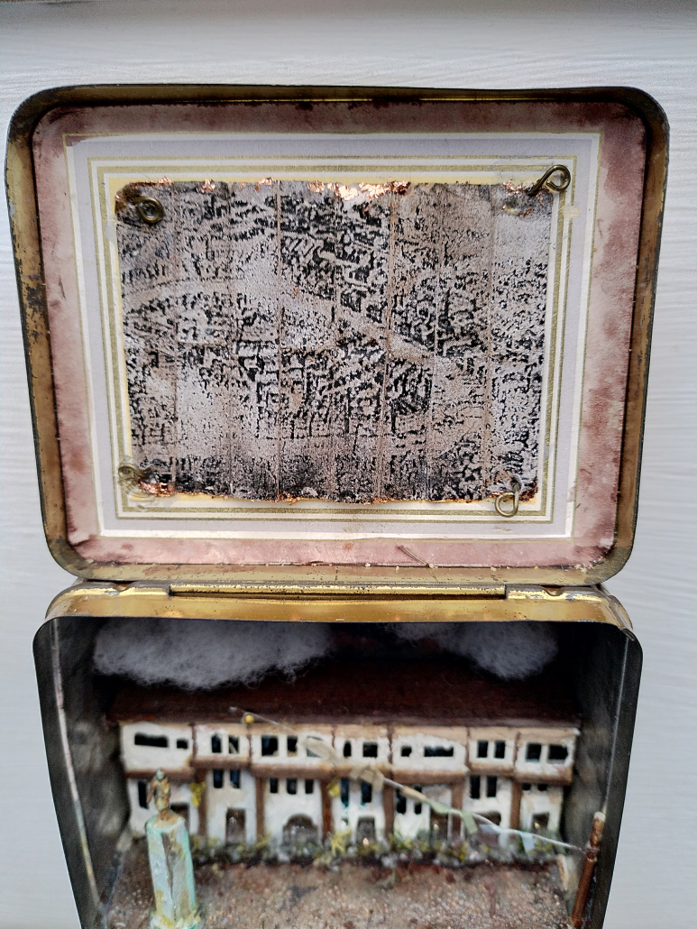 Mini-Diorama Schmale Häuser, enge Straße, Deckel mit Rotglold-Auflage
