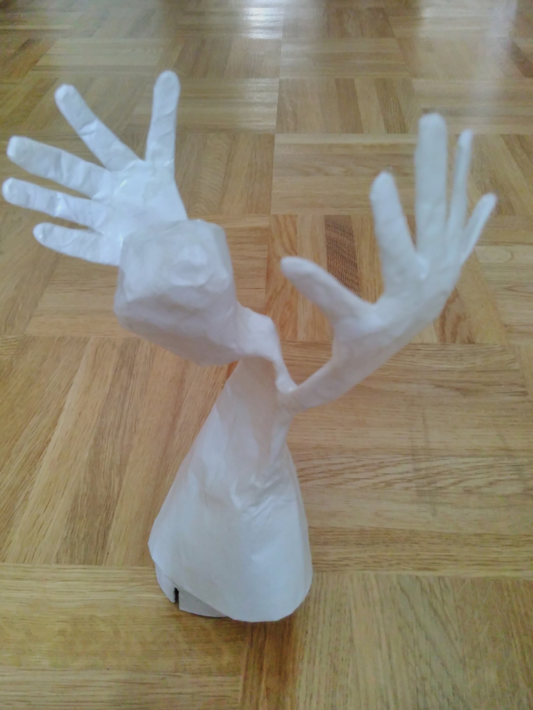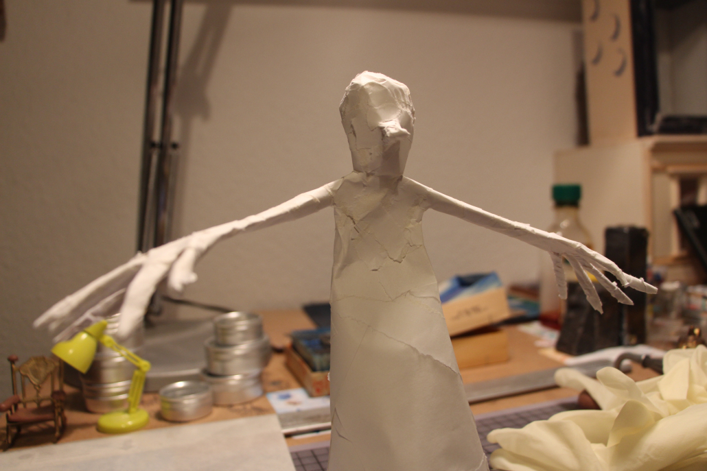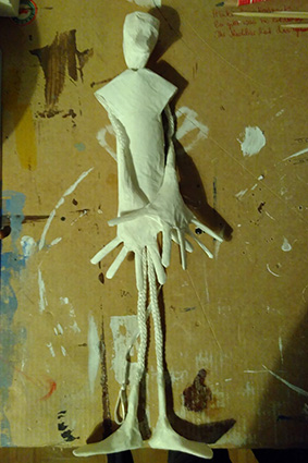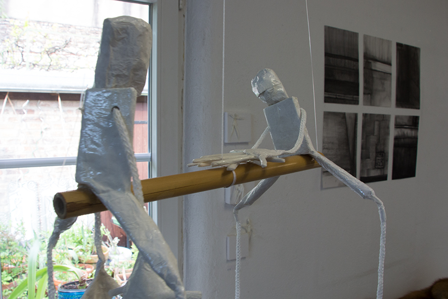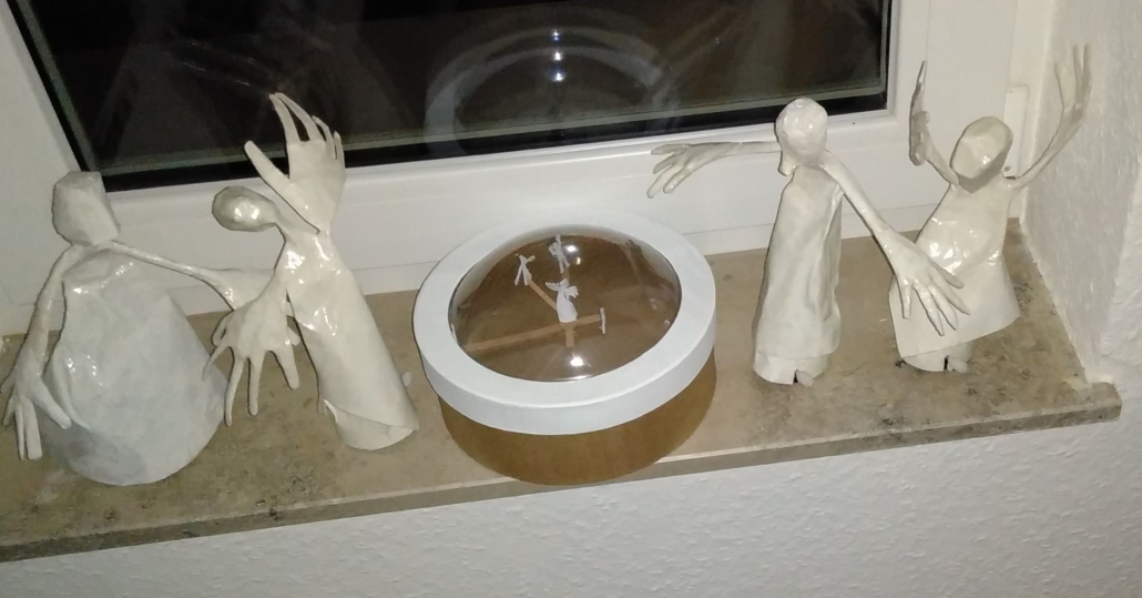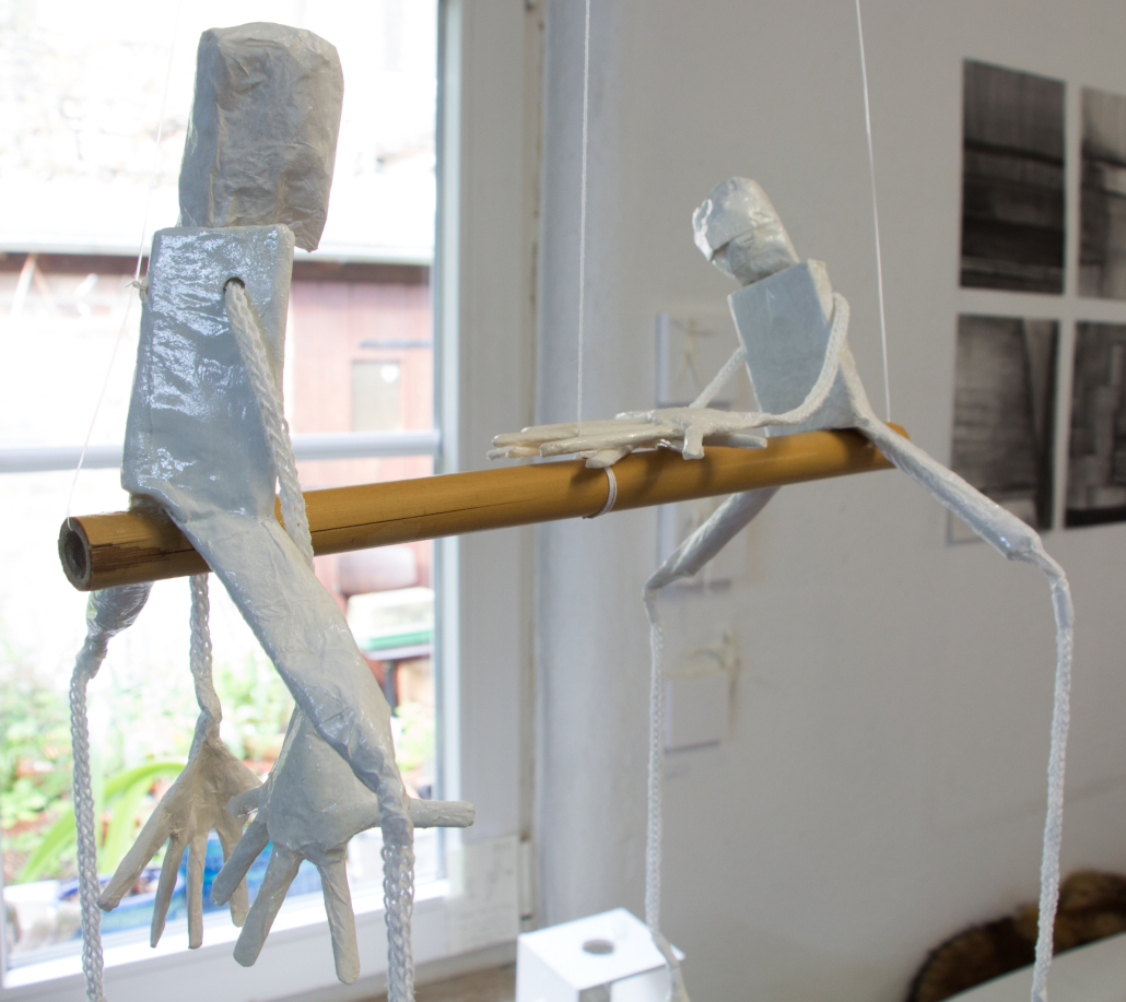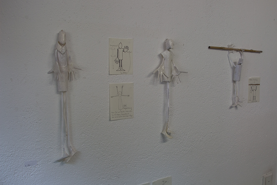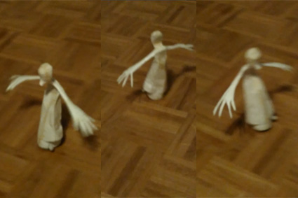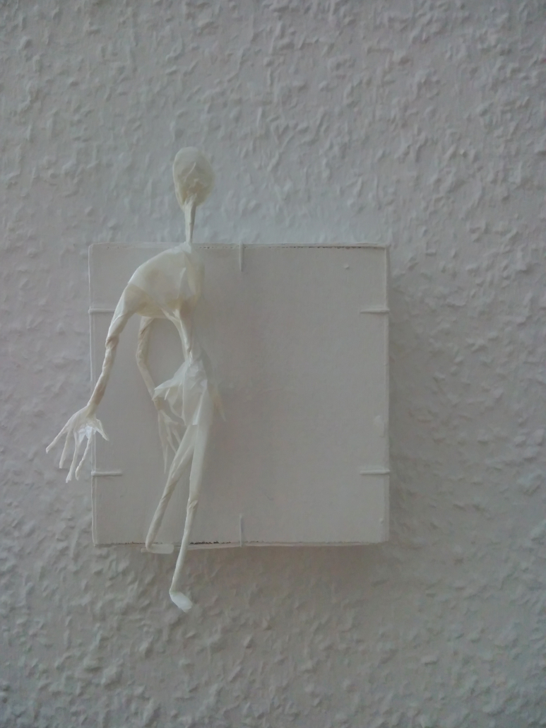 Eine Serie teilweise mobiler Figuren aus verschiedenem weißen Papier, gefaltet und Papiermaché. Die Antriebe beruhen auf Luftschwingung, Perpetum Mobile-Momentum oder kleinen Motoren aus Aufziehspielzeugen und Uhren. Während einige Figuren der plastischen Umsetzung von Strichmännchen entsprechen und der reinen Bewegungsdarstellung dienen, sind andere sehr ausdrucksstark – gerade ihre Hände setzen sie mit großem Gestus ein.